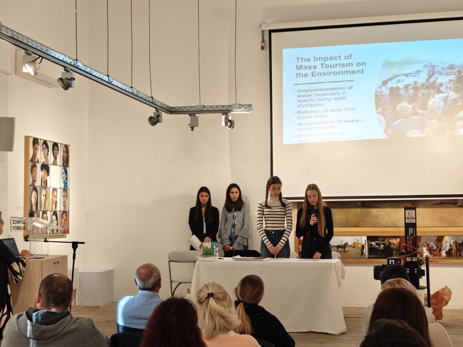 Οι μαθήτριές μας Μελίνα Καφούρου και Ηλέκτρα Κωτσαλίδου παρουσίασαν την εξαιρετική εργασία «Climate Change and Ecotourism», αναδεικνύοντας τη σύνδεση της κλιματικής αλλαγής με τον βιώσιμο τουρισμό και τις προκλήσεις του μέλλοντος.
