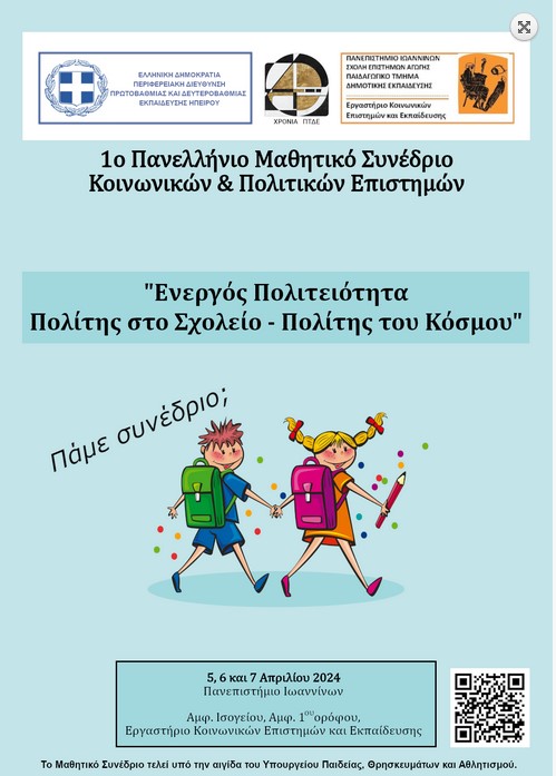Το σχολείο μας συμμετείχε στο 1ο Πανελλήνιο Μαθητικό Συνέδριο Κοινωνικών και Πολιτικών Επιστημών, που πραγματοποιήθηκε στα Ιωάννινα (5-7 Απριλίου 2024), με κεντρικό θέμα την
